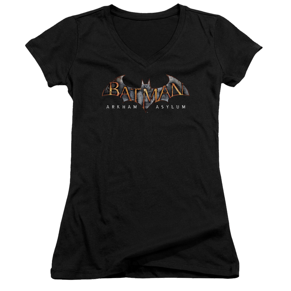 Batman - Arkham Arkham Asylum Logo - Juniors V-Neck T-Shirt