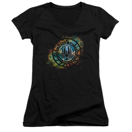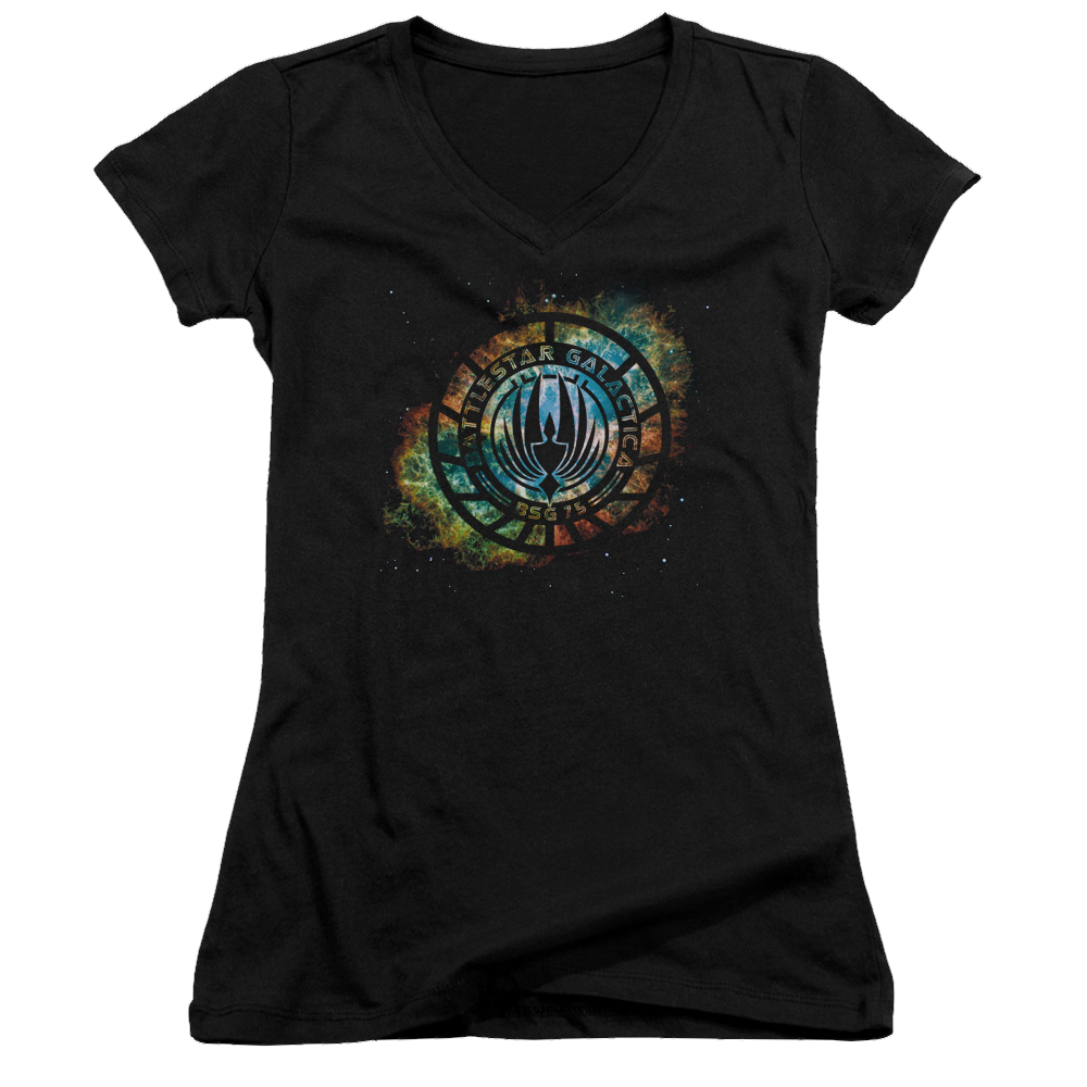 Battlestar Galactica Emblem Knock-out - Juniors V-Neck T-Shirt
